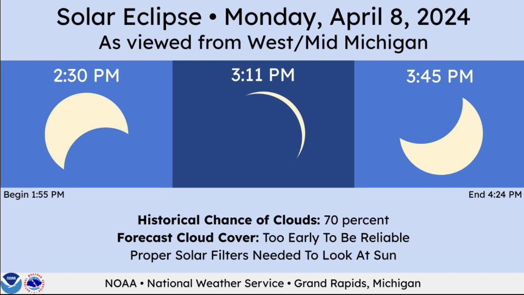 2. April 8th - The Solar Eclipse! West Michigan will experience the eclipse between 2:11 - 3:45 pm. To safely view, here are some tips.