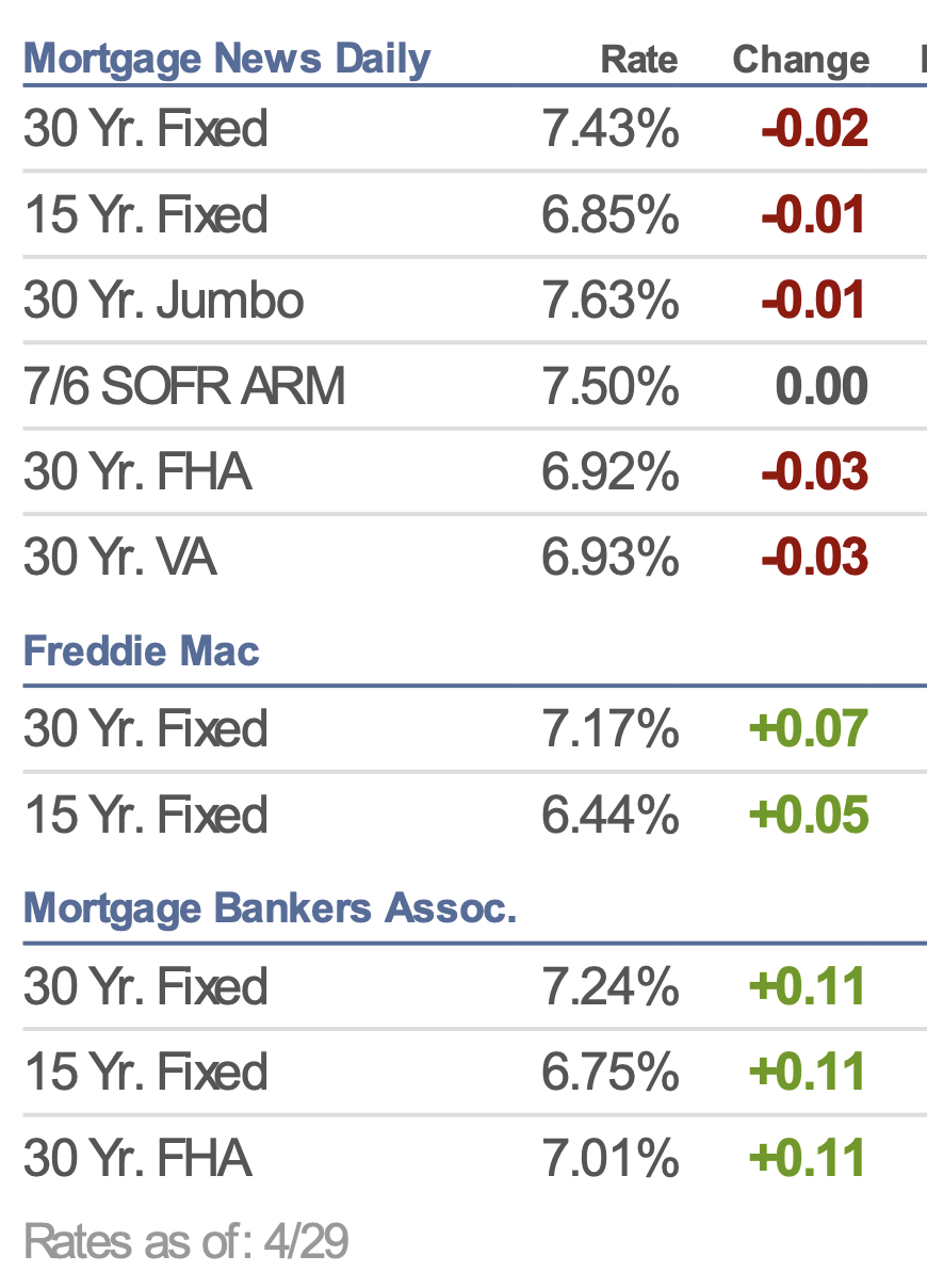 The prospects for mortgage rates have not been great in April. While we did see some relief on Friday, Thursday's reaction to the quarterly PCE data brought the average 30yr fixed rate to new 5 month highs--a fact that is not yet reflected in Freddie's weekly survey numbers.